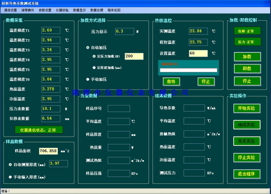 儀器特點(diǎn):自動加壓,自動測厚,實(shí)驗(yàn)全自動控制。6點(diǎn)溫度梯度檢測,提高測試精度??蓹z測不同壓力下熱阻曲線,采用優(yōu)化的數(shù)學(xué)模型,測量材料導(dǎo)熱系數(shù)和熱阻以及界面處接觸熱阻等。